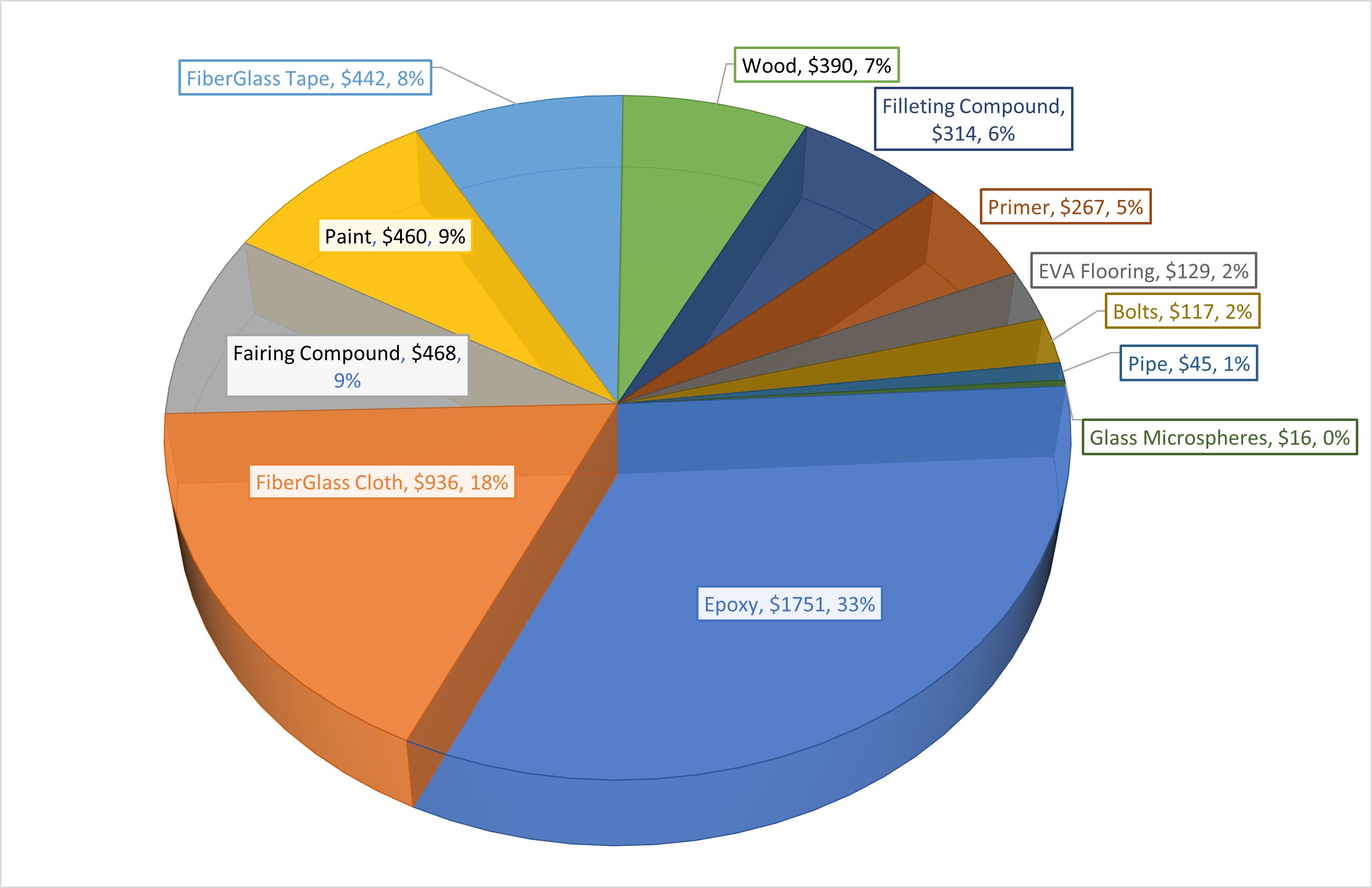 USD: 5334 in raw materials only + Estimated 1900 hours of labor.