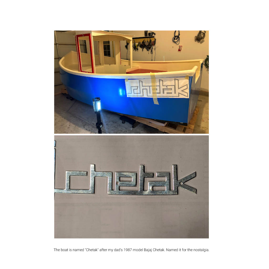 Ahoy there! Let me introduce you to CHETAK, the Mini Tug Boat that I’ve poured my heart and soul into. This little beauty, clad in bright blue with vibrant red seats, is a true labor of love. Crafted from plywood, CHETAK features gentle sweeping curves and a cozy wheelhouse for two. Each panel was meticulously hand-cut and assembled over countless hours. The process of bringing CHETAK to life was a journey filled with problem-solving and perseverance. Countless weekends were dedicated to its construction, culminating in obtaining a HIN number and registration, officially marking it as a true vessel. Named after the nostalgic connection to the popular Indian scooter cherished by my dad, CHETAK is not just a boat; it’s a symbol of cherished memories and the dedication poured into its creation.
